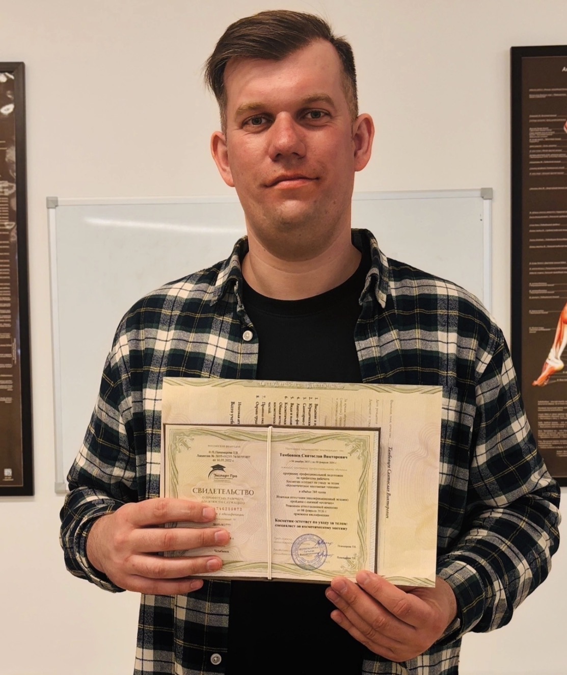 Мы проводим аттестацию специалистов (теория/практика) и выдаем вам свидетельство о профессии "Косметик-эстетист по уходу за телом" с занесением в ФИС ФРДО